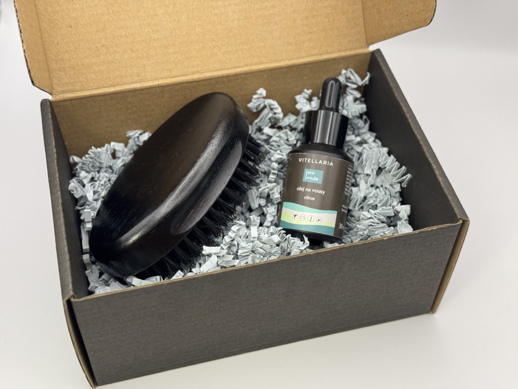 c) Kartáč na vousy + Olej na vousy Citrus (30 ml)