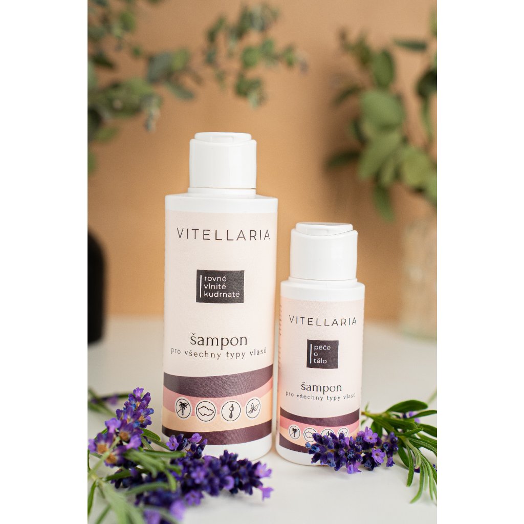 Vitellaria šampon pro všechny typy vlasů jemně a šetrně vyčistí vaše vlasy a pokožku hlavy, je vhodný i ke každodennímu použití. Arganový a meruňkový olej vlasy vyživí a dodá jim zdravý vzhled. Panthenol vlasy hydratuje a posiluje. Směs éterických olejů dodává šamponu nejenom příjemnou vůni, ale také působí příznivě na vlasovou pokožku.