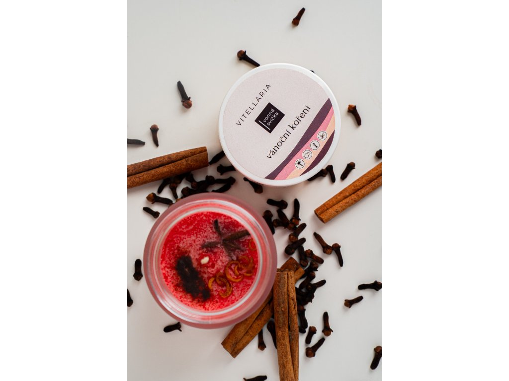 Přírodní vonná svíčka ze sójového vosku a kokosového oleje, s exotickou vůní oblíbeného vánočního koření.