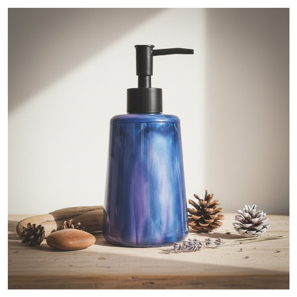 Designový dávkovač na tekuté mýdlo z epoxidové pryskyřice je stylovým doplňkem každé koupelny nebo kuchyně. Kombinuje moderní vzhled s praktickým použitím
